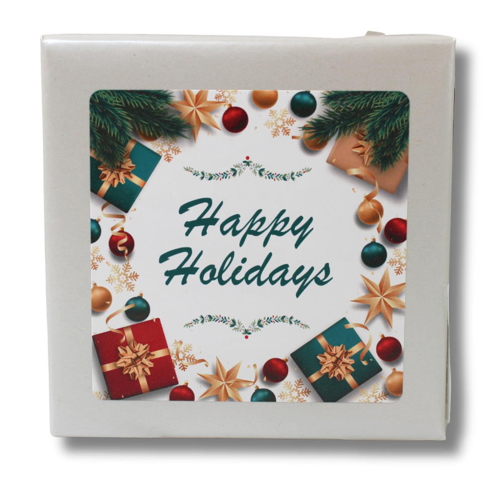 The Happy Holidays Box is a beautiful way to send festive greetings this holiday season. Choose your chocolates - Milk Chocolate Mint Smoothies or Assorted Chocolates (includes a selection of cream centres, caramels, smoothies, and nuts enrobed in milk and dark chocolate) and we'll take care of the rest.