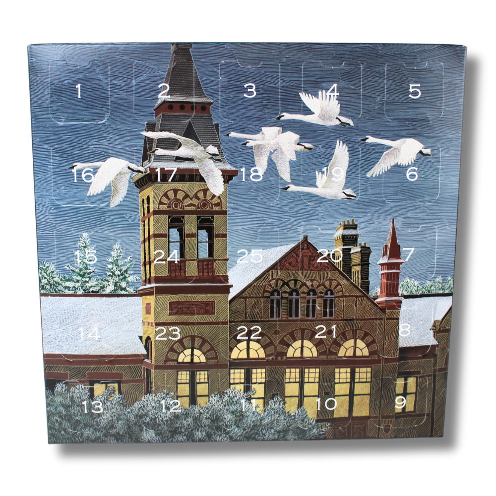 Counting down to Christmas has never been so tasty! The famous Mint Smoothie® is now available in our advent calendar with magnificent artwork capturing the beauty of historic Stratford architecture. NEW in 2025, Stratford artist, Scott McKowen, has designed a stunning new piece for us featuring our historic Court House. Learn the history of the building as you enjoy 25 hand-wrapped milk chocolate Mint Smoothies leading up to the holidays.