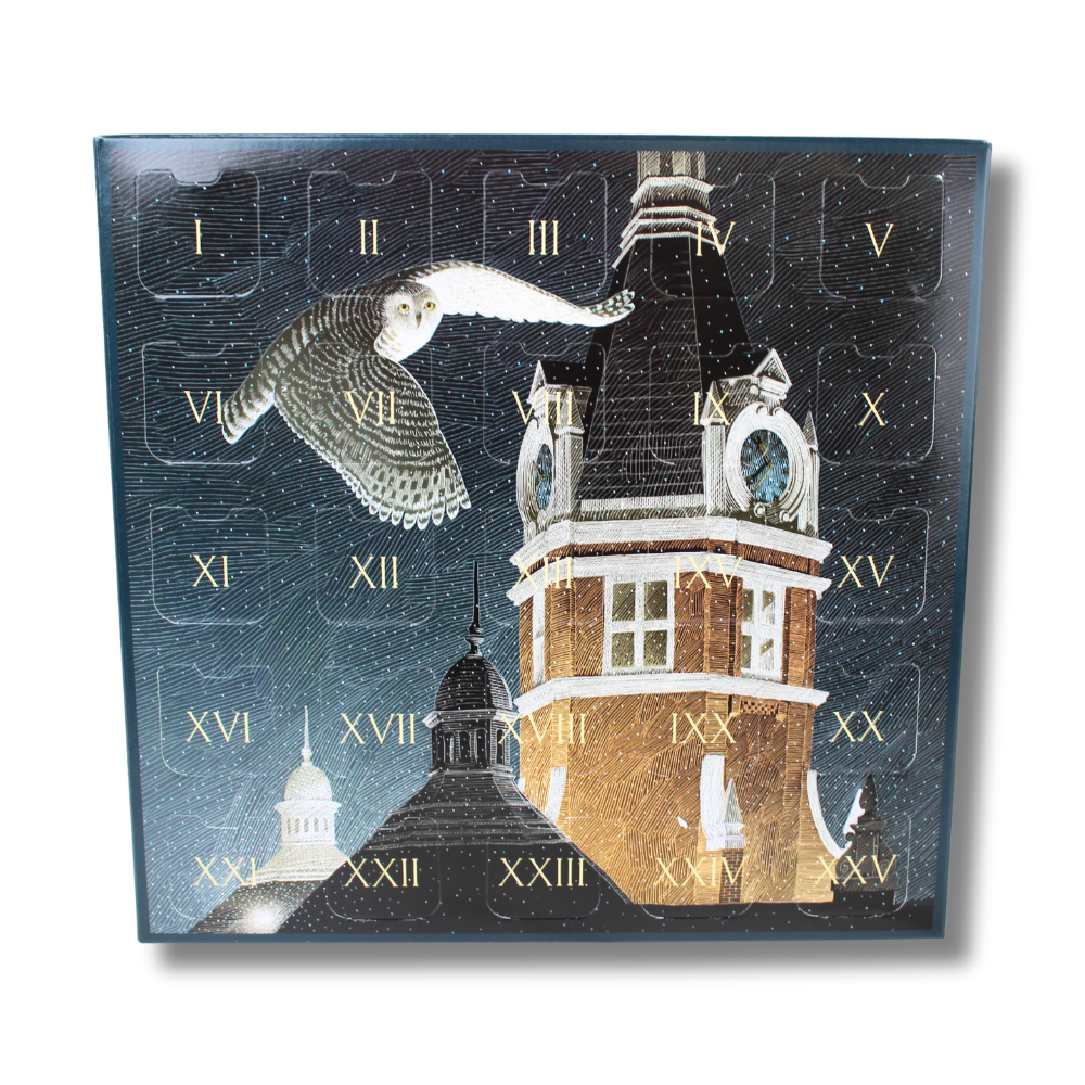 Counting down to Christmas has never been so tasty! The famous Mint Smoothie® is now available in our advent calendar with magnificent artwork capturing the beauty of historic Stratford architecture. Stratford artist, Scott McKowen, designed a stunning piece for us featuring Stratford's beautiful City Hall. Learn the history of the building as you enjoy 25 hand-wrapped milk chocolate Mint Smoothies leading up to the holidays.