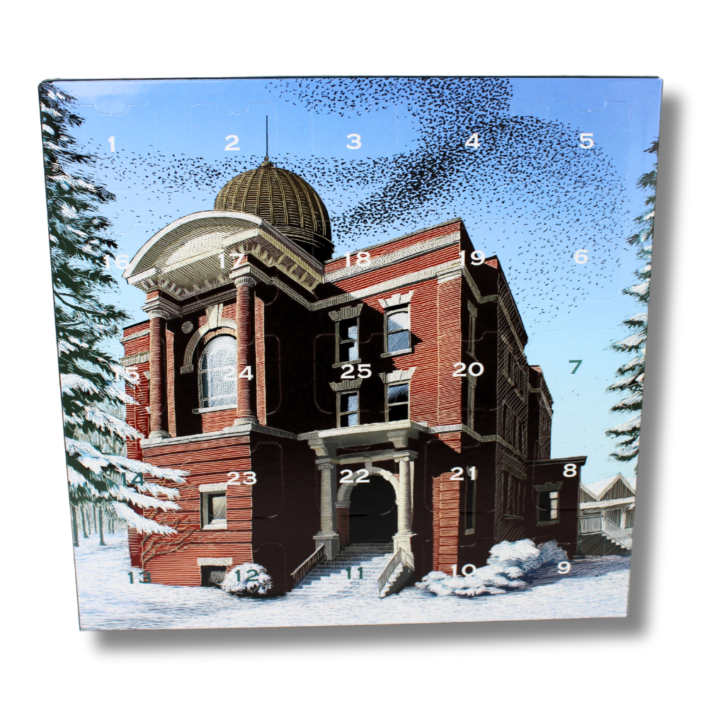 Counting down to Christmas has never been so tasty! The famous Mint Smoothie® is now available in our advent calendar with magnificent artwork capturing the beauty of historic Stratford architecture. In 2024, Stratford artist, Scott McKowen, designed a stunning piece for us featuring our gothic Normal School, currently operating as the Discovery Centre for the Stratford Festival. Learn the history of the building as you enjoy 25 hand-wrapped milk chocolate Mint Smoothies leading up to the holidays.