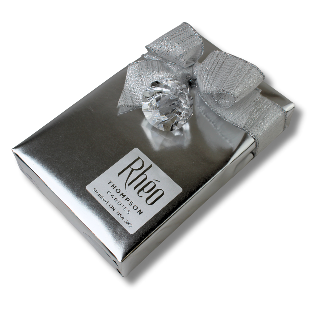 The Ornate Diamond Gift Box makes for an elegant Christmas gift! It is available in either our iconic milk chocolate Mint Smoothies® or Assorted Chocolates (includes a selection of cream centres, caramels, and nuts enrobed in milk and dark chocolate) and we will wrap it up and finish it with a handcrafted bow!