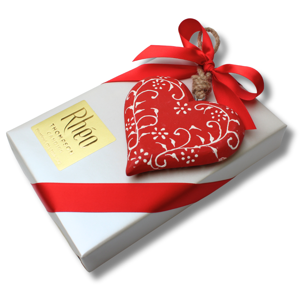 The Patterned Heart Gift Box is the perfect way to share the love! Choose from either our iconic milk chocolate Mint Smoothies® or Milk and Dark Chocolate Assorted Centres (includes a selection of cream centres, caramels, and nuts) and we will wrap it up and finish it with this beautiful wood heart painted in this lovely red and white pattern!