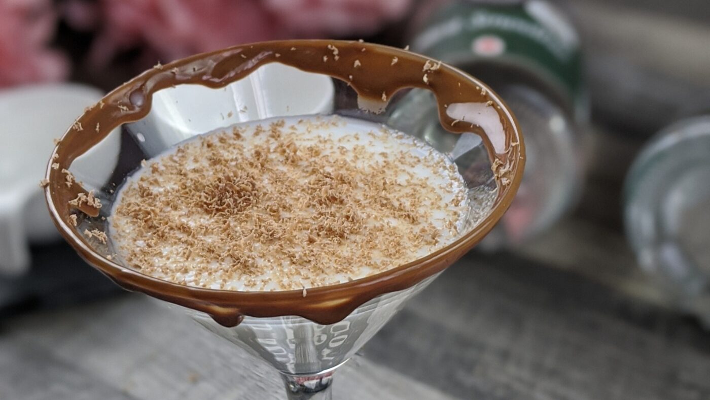 2. Dip rim of martini glasses into melted chocolate to coat rims. Chill in the fridge while preparing the cocktail.