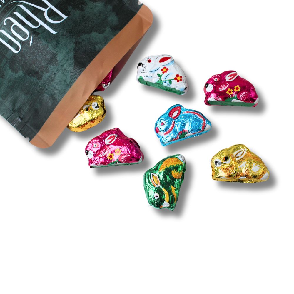 Decadent milk chocolate foil-wrapped bunnies in a 200g pouch. Available only at Easter time.