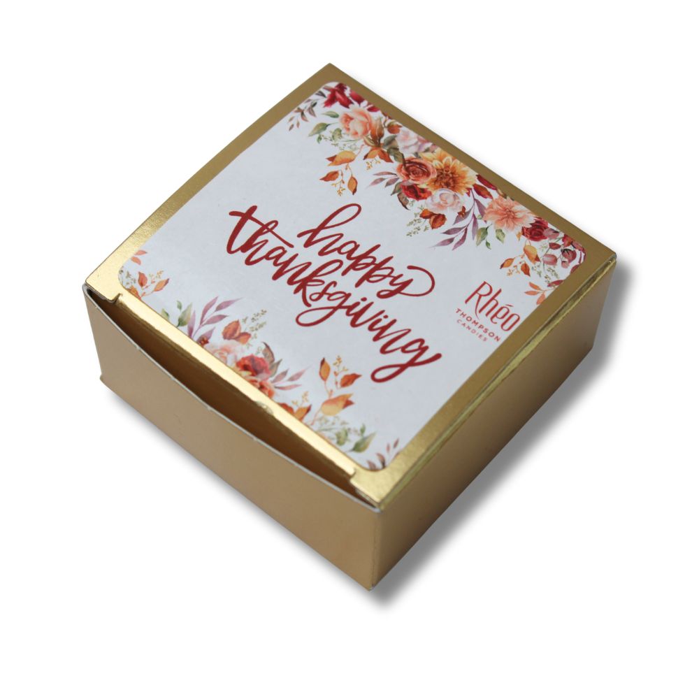 Packed up in an adorable gold favour box with a cozy Autumn embellishment.