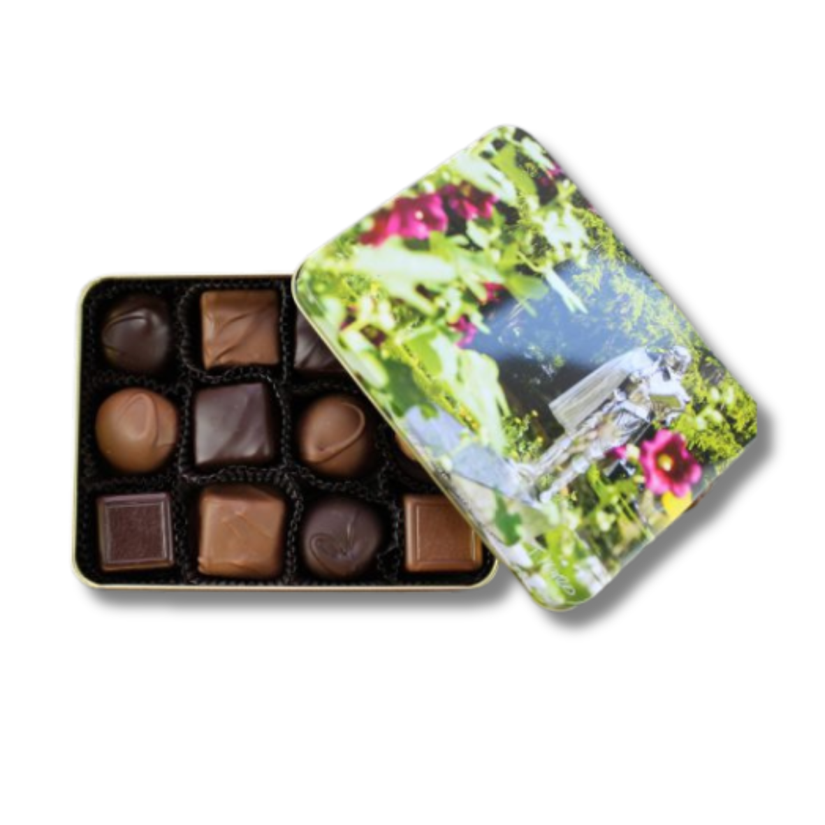 Nothing is more iconic to Stratford, Ontario than our passion for theatre, and in particular, Shakespeare. This Small Shakespeare Tin, with artwork by Terry Manzo, captures the beauty of the Stratford Festival statue of the Bard. We fill this collector’s piece with 12 milk chocolate Mint Smoothies® and finish it with a Rheo Thompson Candies ribbon.