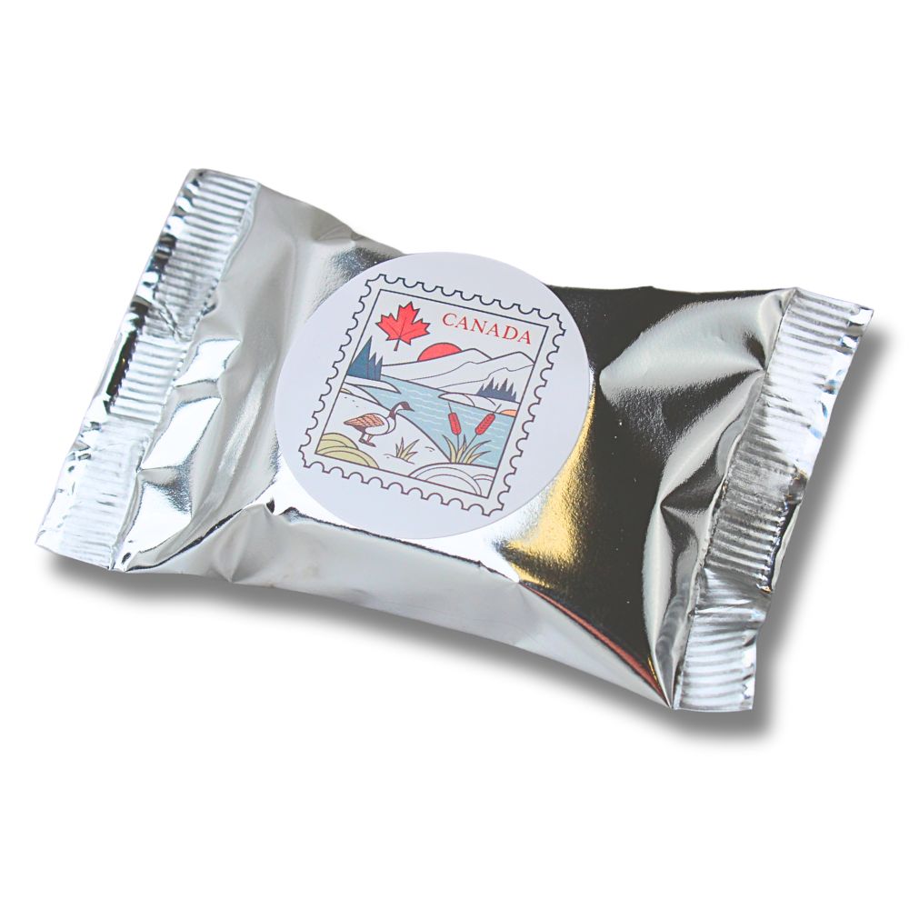 We love being Canadian candy makers. We love this community, we love this country, and we love the people who choose to make it their home. And that’s why, the To Canada, With Love Smoothie Bar is a sweet little way to share just a taste of some of the many things that are great about this wonderful nation. Our Milk Chocolate Mint Smoothie Bar finished with a special Canadian stamp sticker.