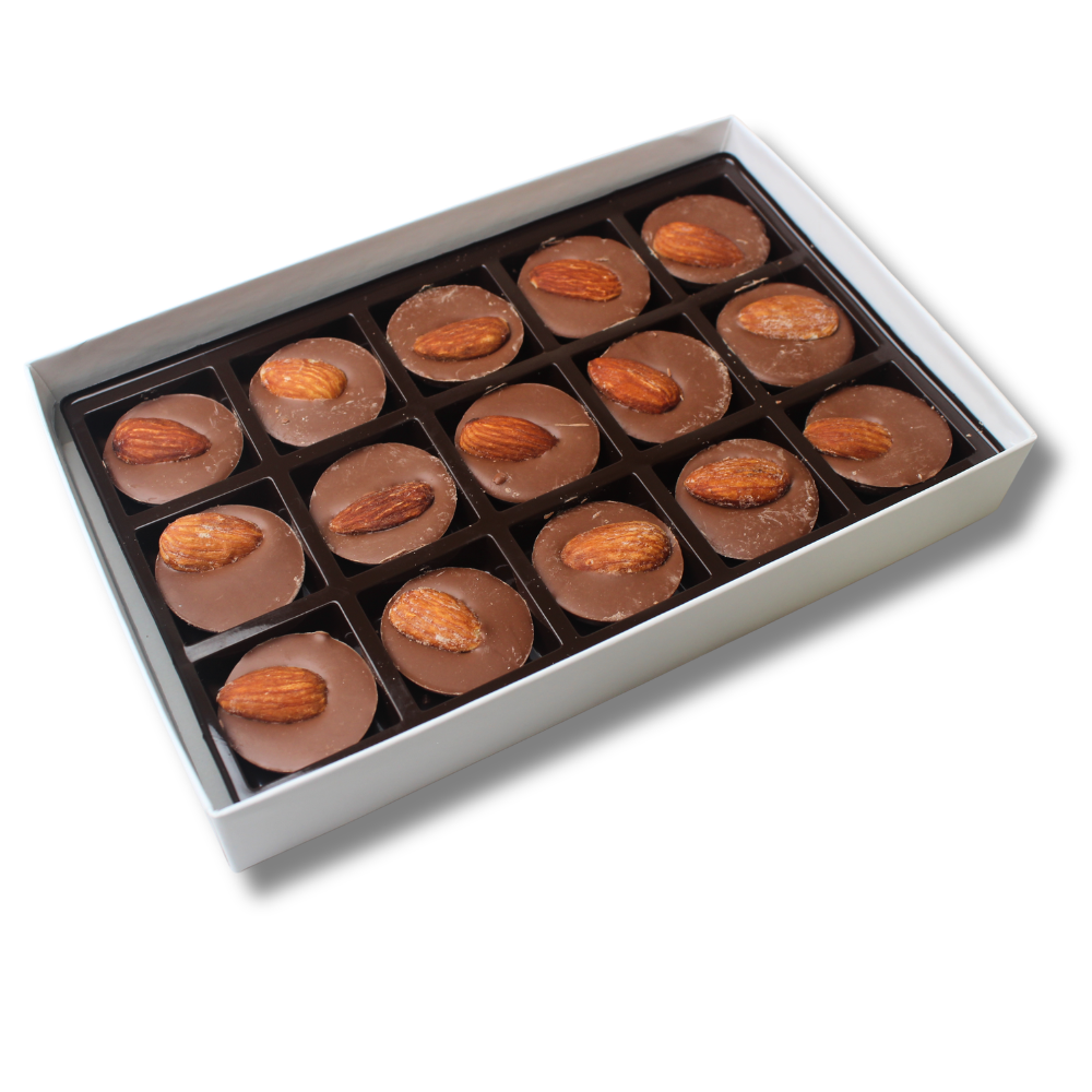 Ingredients: Maltitol • Cocoa butter • Skim milk powder • Unsweetened chocolate • Almonds • Coconut oil • Salt • Soy lecithin • Vanilla