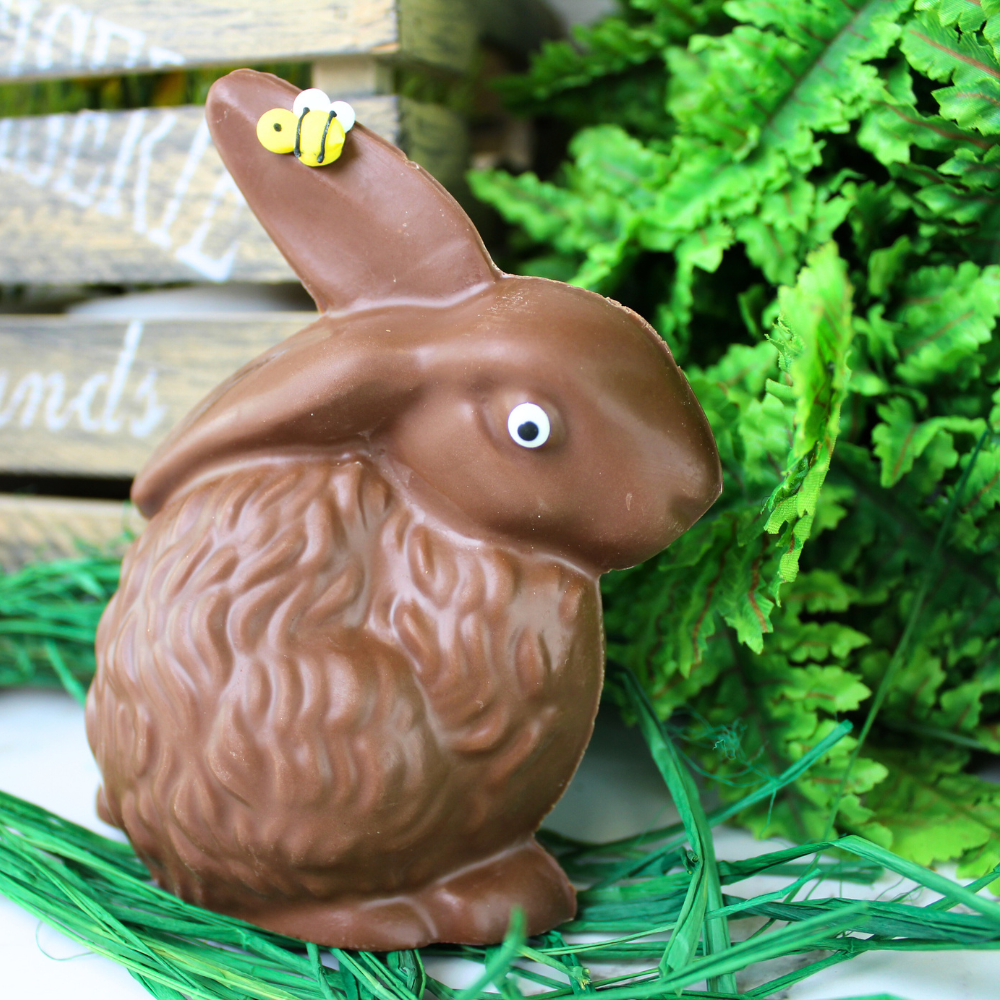 Harry Bunny is the sweetest little guy with his fur and distinctive ears. He is a hollow, medium sized bunny available in milk or dark chocolate. As he is hollow, we are unable to ship him so he will be available for PICKUP ONLY.