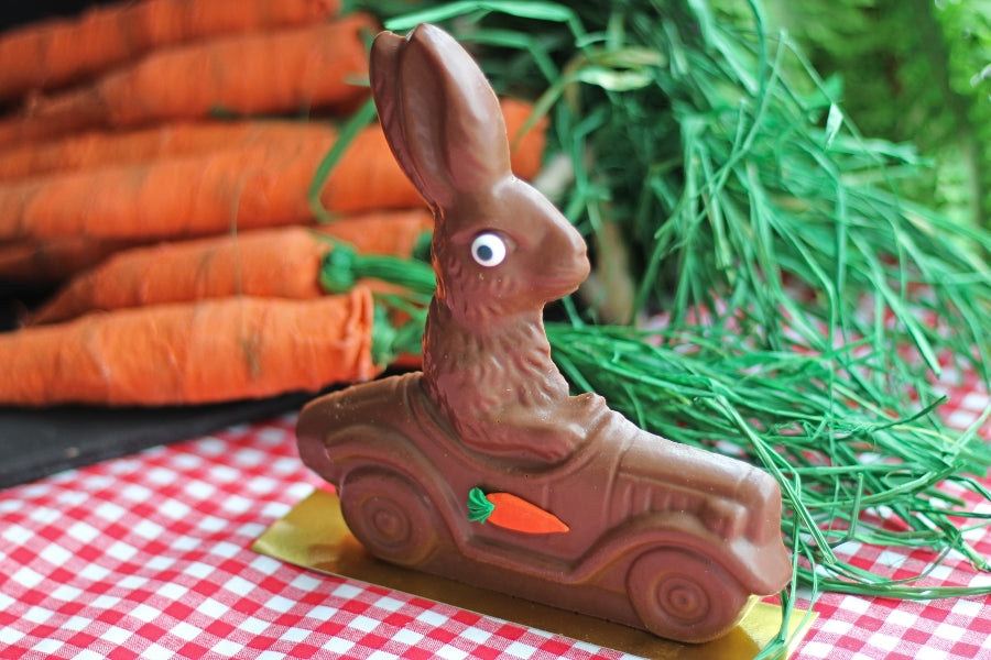 Hot Rod Bunny is meant for action! He is a sleek design available in milk chocolate. As he is a delicate bunny, we are unable to ship him so he will be available for PICKUP ONLY.
