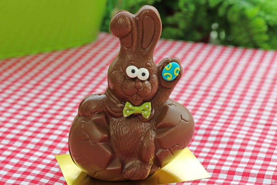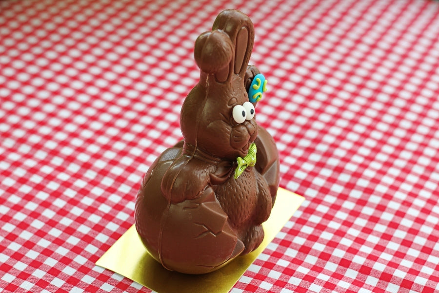 Marc Bunny is one of our cutest moulds with his cracked egg and a gigantic smile. As he is a hollow bunny, we are unable to ship him so he will be available for PICKUP ONLY.